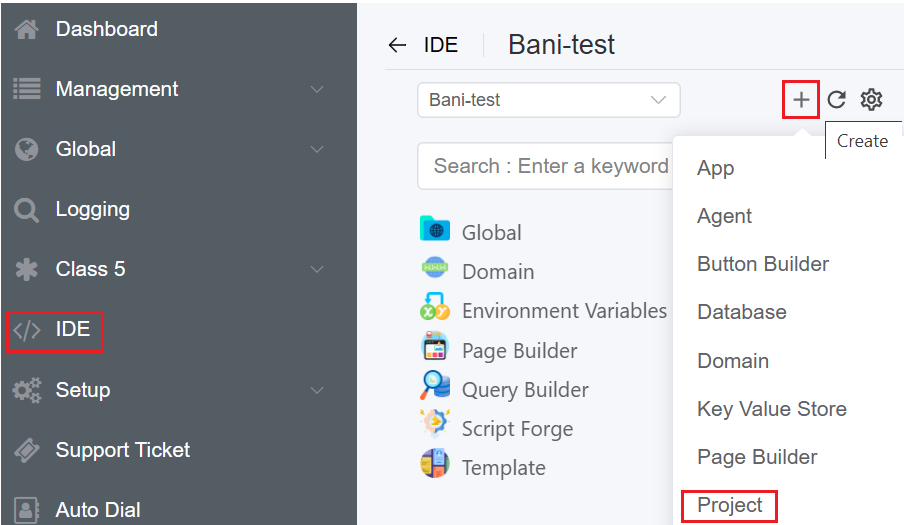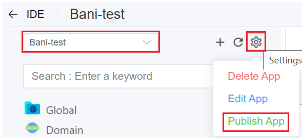 - Navigate to IDE Select an Application to be placed under the Project Settings Publish App.