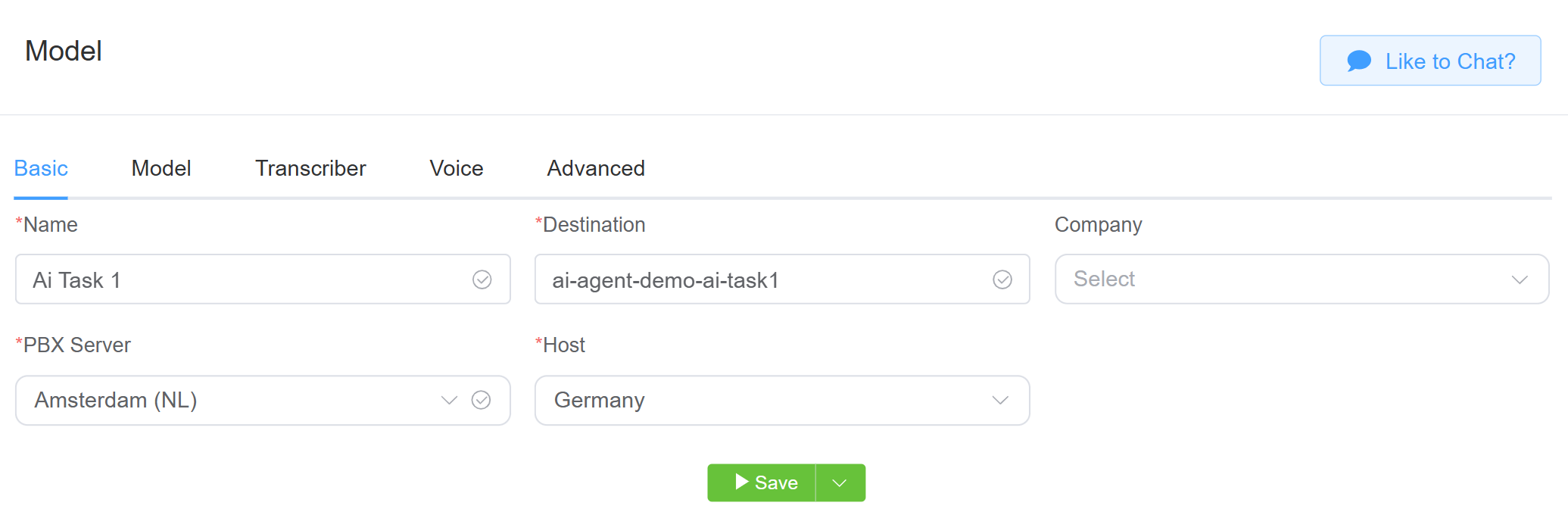 Model: Select a model for the selected platform. A model is a specific version or configuration of an AI system to perform tasks like text generation, real-time interactions etc.