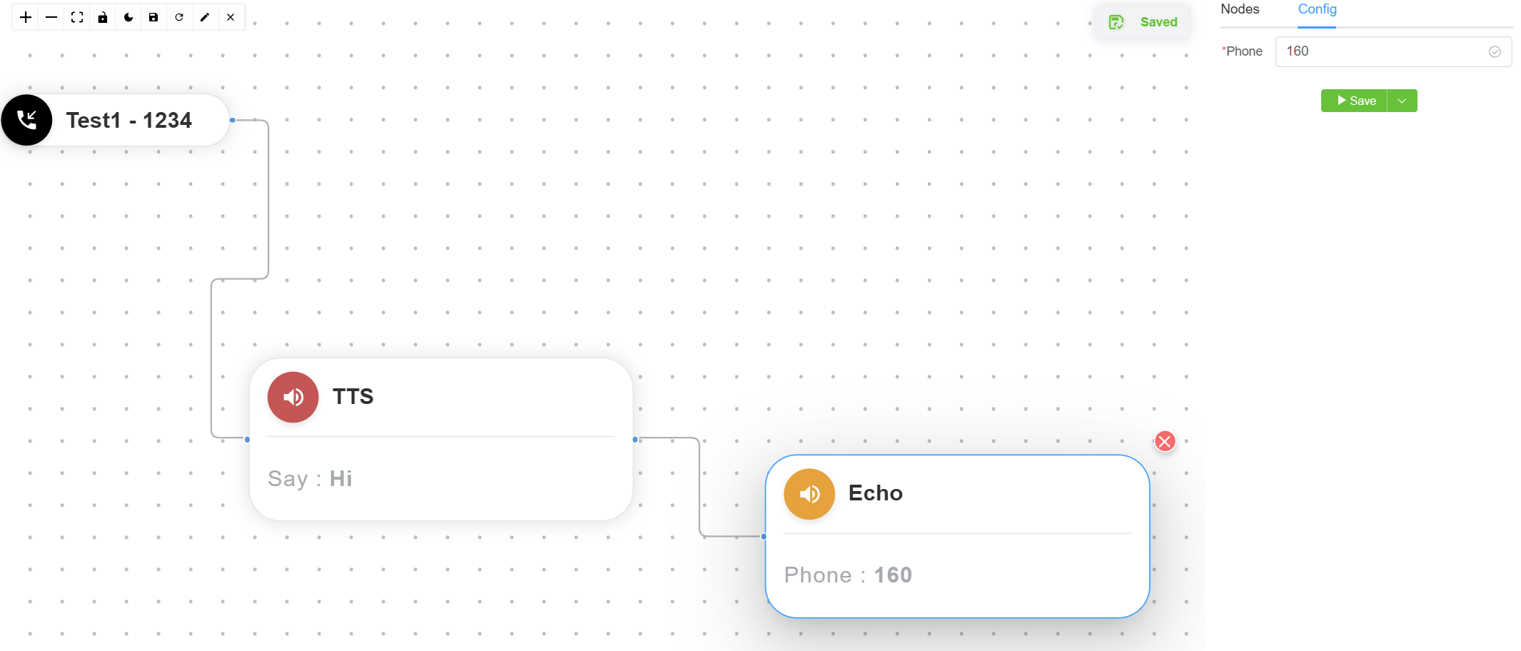 Echonode onto the canvas. - Connect the Echo node to the TTS node.