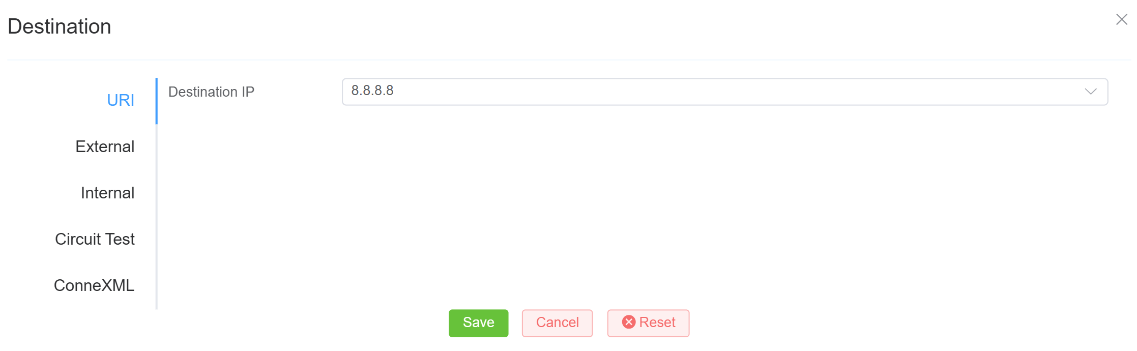 - URI: Set the Destination DID (number or extension) and Destination IP to forward calls to, or a specific Session Initiation Protocol (SIP) Uniform Resource Identifier (URI).