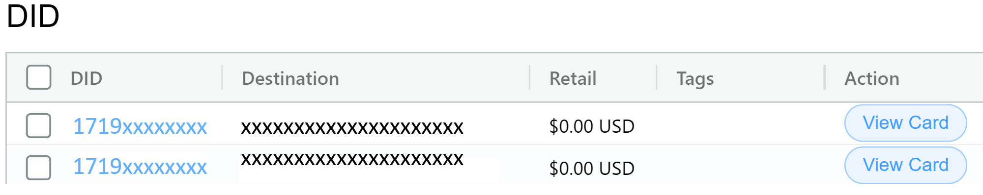 Each DID in the Customer Portal has a cost, which is determined by the pricing package assigned to it. The portal displays this package cost when a DID is purchased.