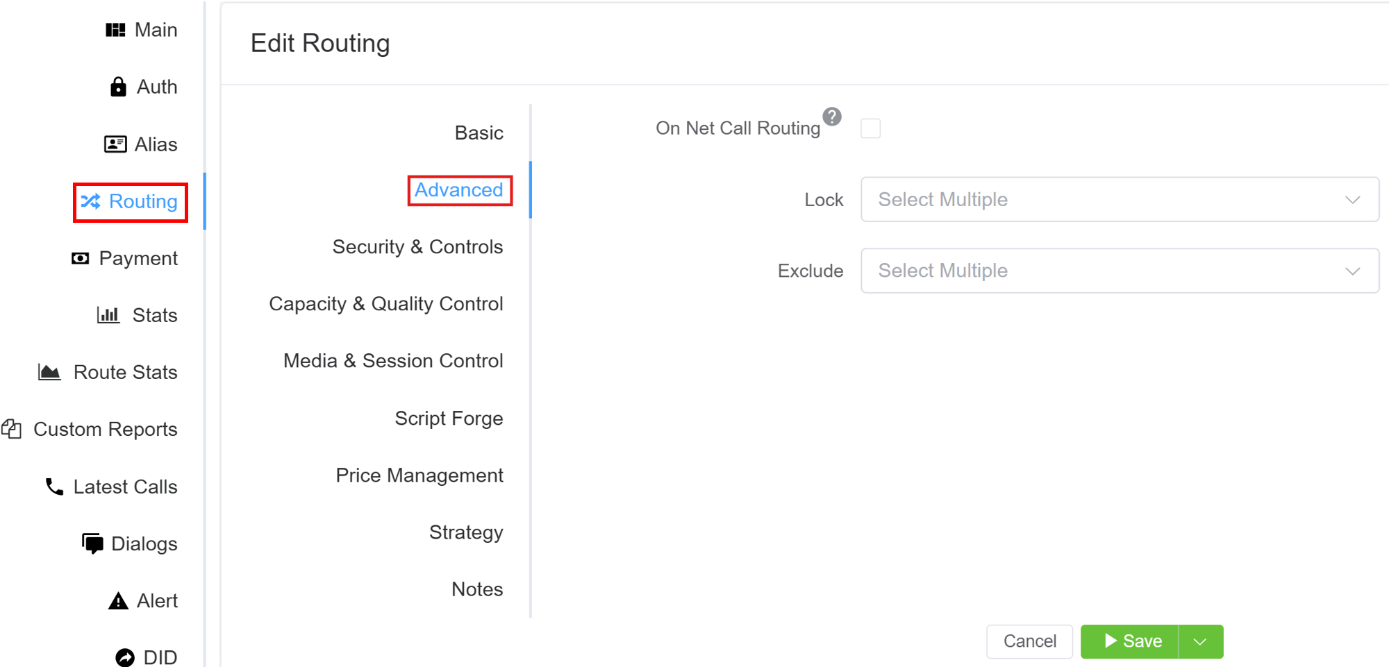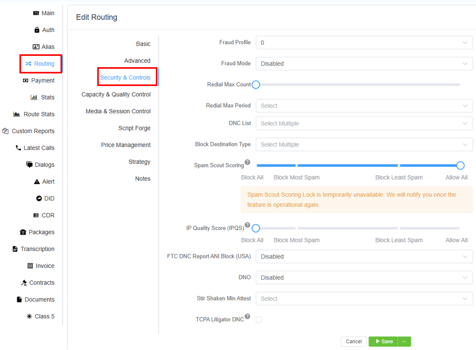 If a customer reports an issue with a carrier or route, you can come here and set the carrier / route to Exclude and Save
