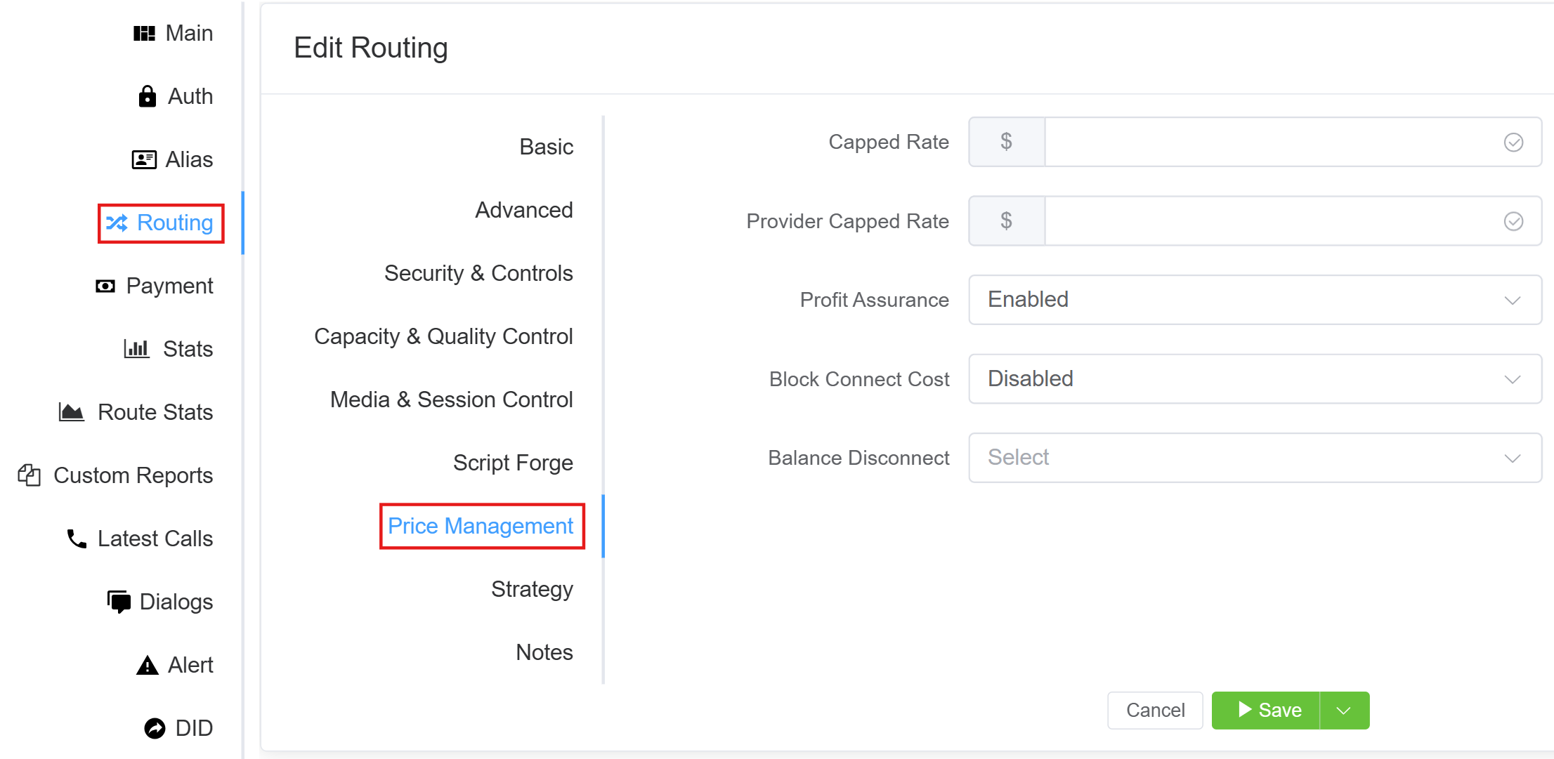 Strategic Routing feature allows creating a Routing Strategy that, when applied, will route calls to specific provider rate cards, completely bypassing any routing configured in the customer rate card.