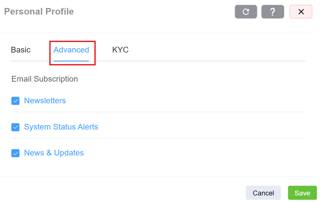 The Know Your Customer (KYC) tab provides access to the customer identity verification workflow. When KYC verification is enabled from the backend, users can complete the verification process directly within this section.