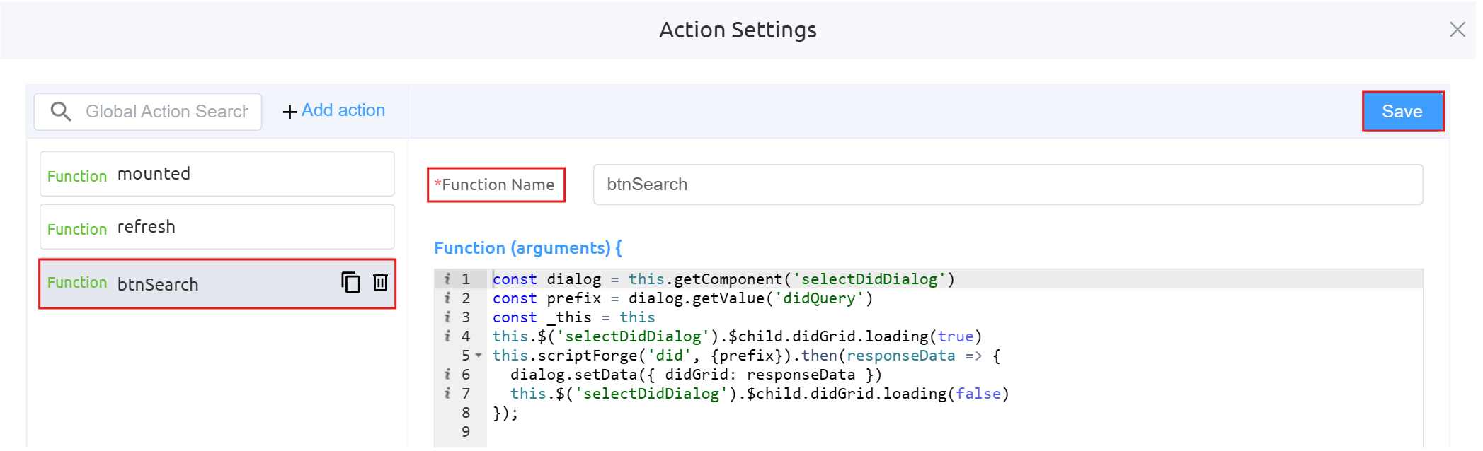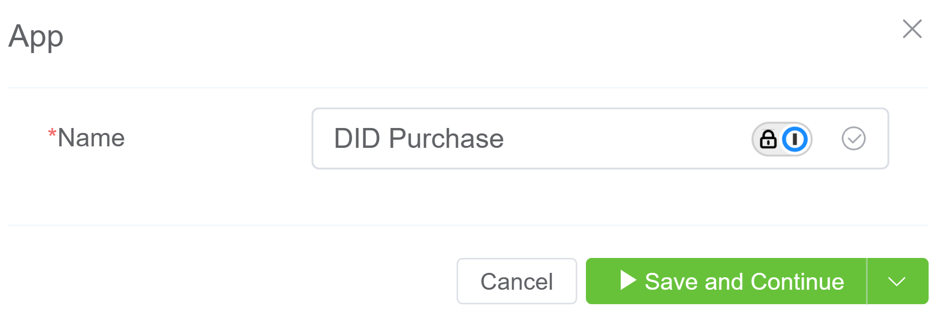 Start Purchasing DIDs) is an action trigger that allows users to initiate the DID purchasing workflow** by executing the configuredonClickaction (startPurchasingDids).Dialog Component Attributes