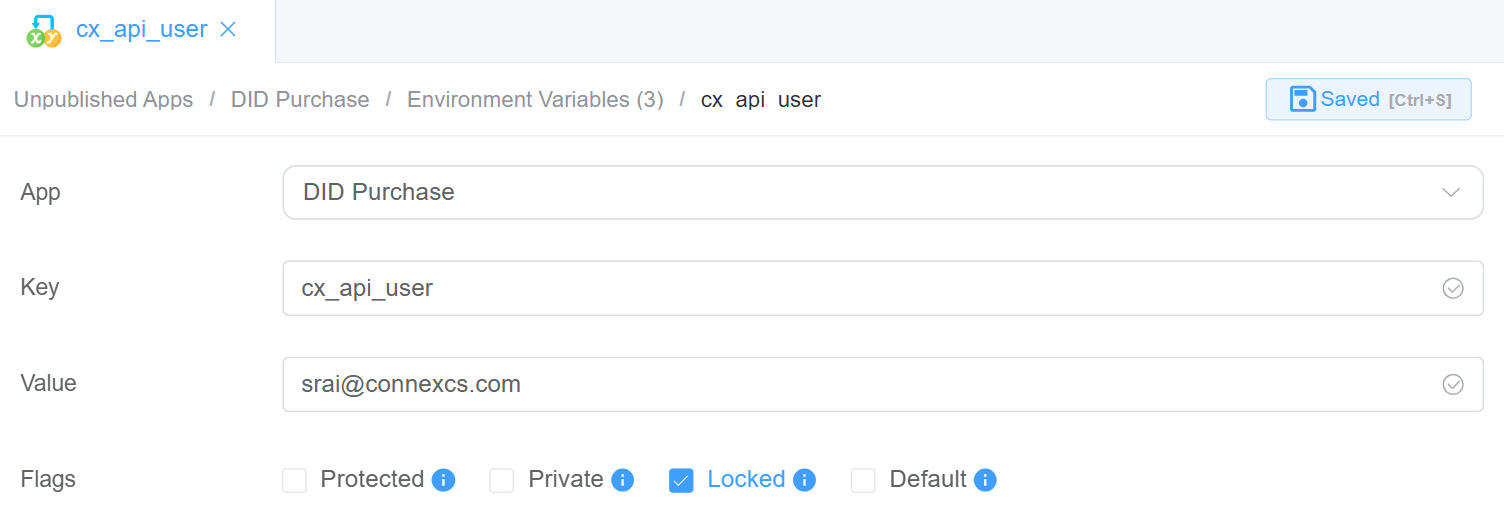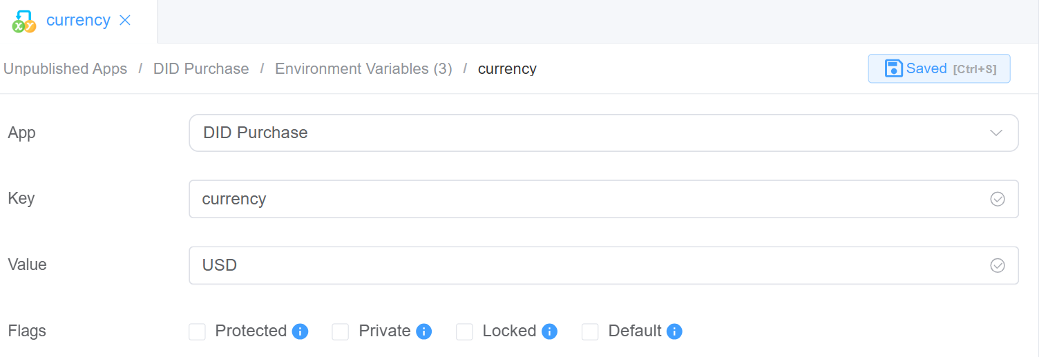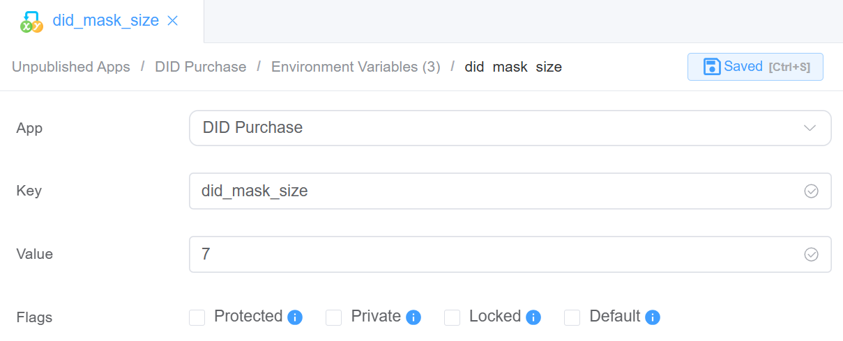 App: Specifies the application where the variable is used.Key: The name/identifier of the variable. Used in code or configuration to reference the value.Value: The actual value assigned to the key.Flags: These control how the variable behaves:- Protected: Prevents accidental modification or deletion.