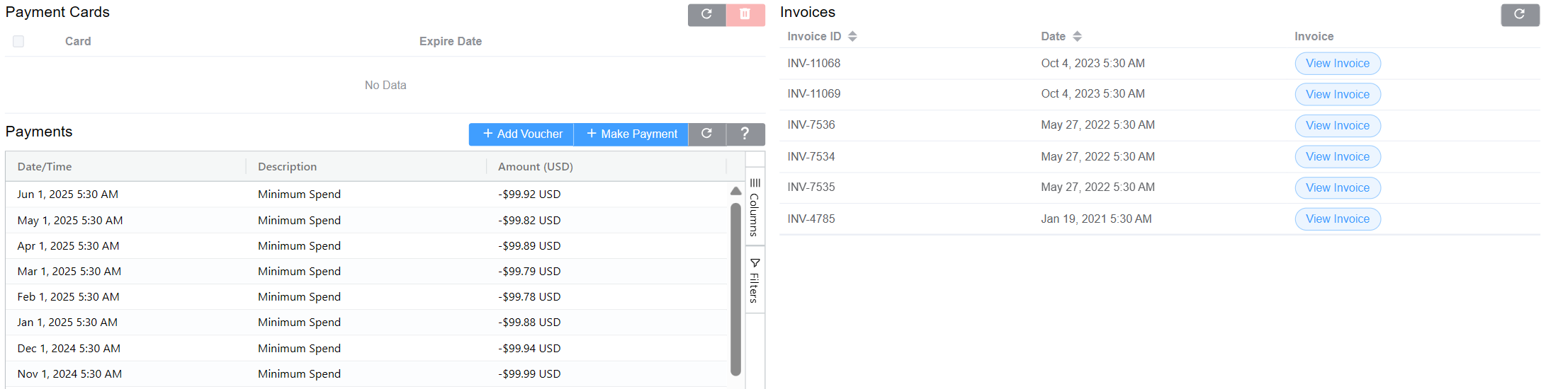 Use the Payments view to manage payments to ConnexCS and other related functions.